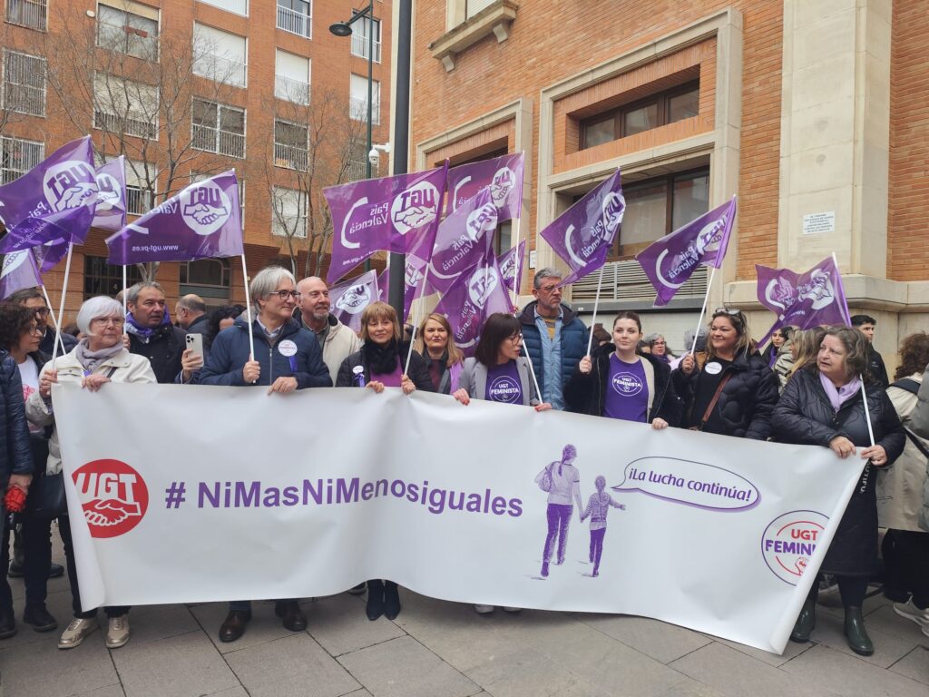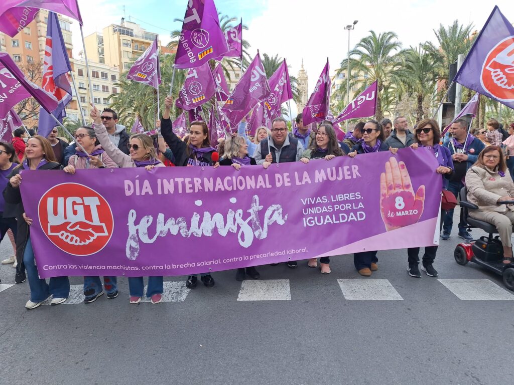 UGT Serveis Públics del País Valencià ha vuelto a salir a las calles con motivo del 8M, Día Internacional de la Mujer Trabajadora, para defender la vigencia del feminismo y apoyar su causa: la igualdad real y efectiva de mujeres y hombres y el fin de la violencia de género. Un año más, la organización reafirma su compromiso con un movimiento feminista que es en estos momentos clave para frenar la ola reaccionaria que atraviesa el mundo y en el que los derechos de las mujeres están en el punto de mira.
