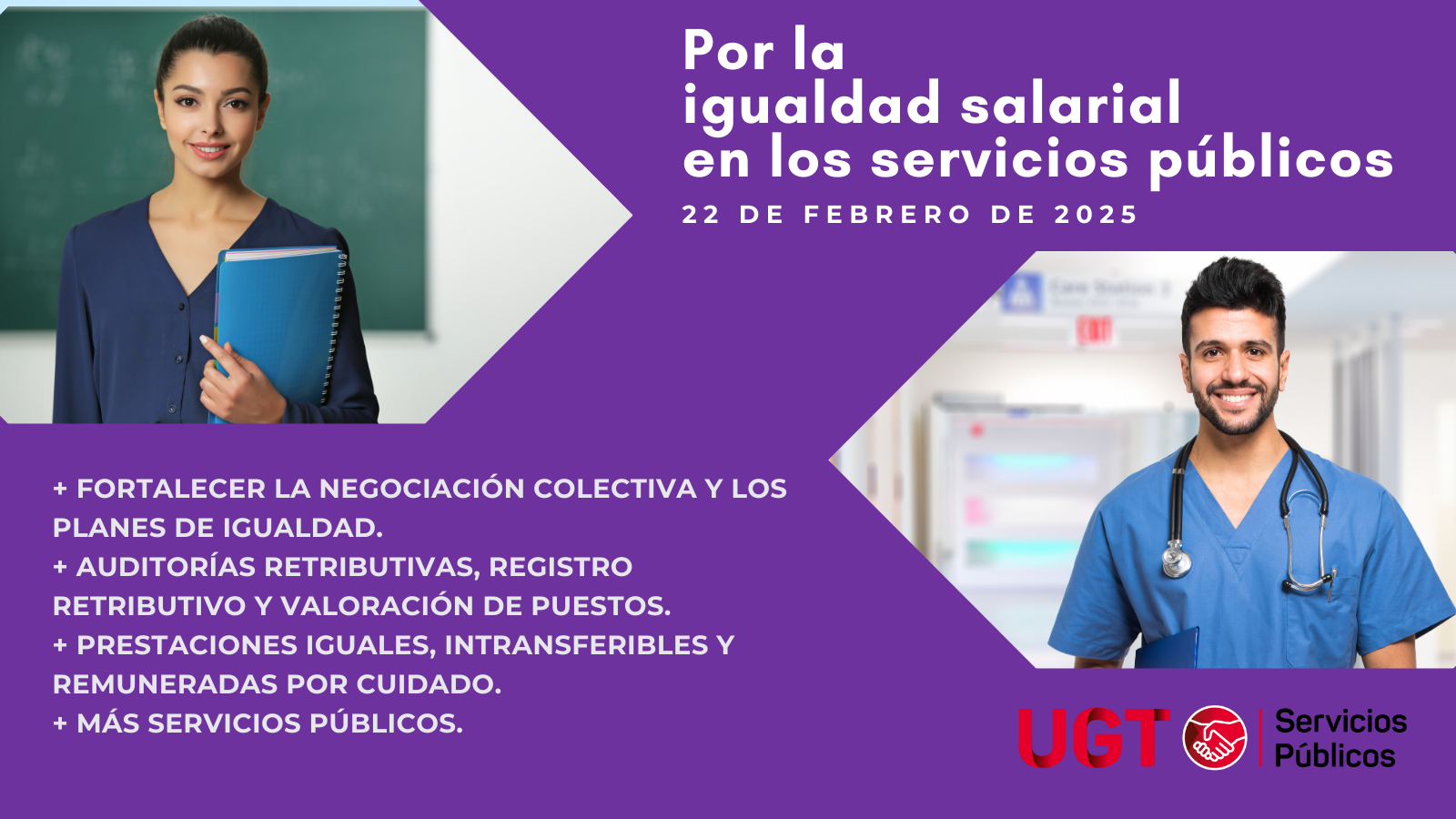 El 22 de febrero se conmemora el Día Internacional de la Igualdad Salarial. Desde UGT Servicios Públicos, llamamos a desarrollar de forma efectiva los mecanismos para identificar y corregir esta discriminación, promoviendo las condiciones necesarias y trabajando en los obstáculos existentes.