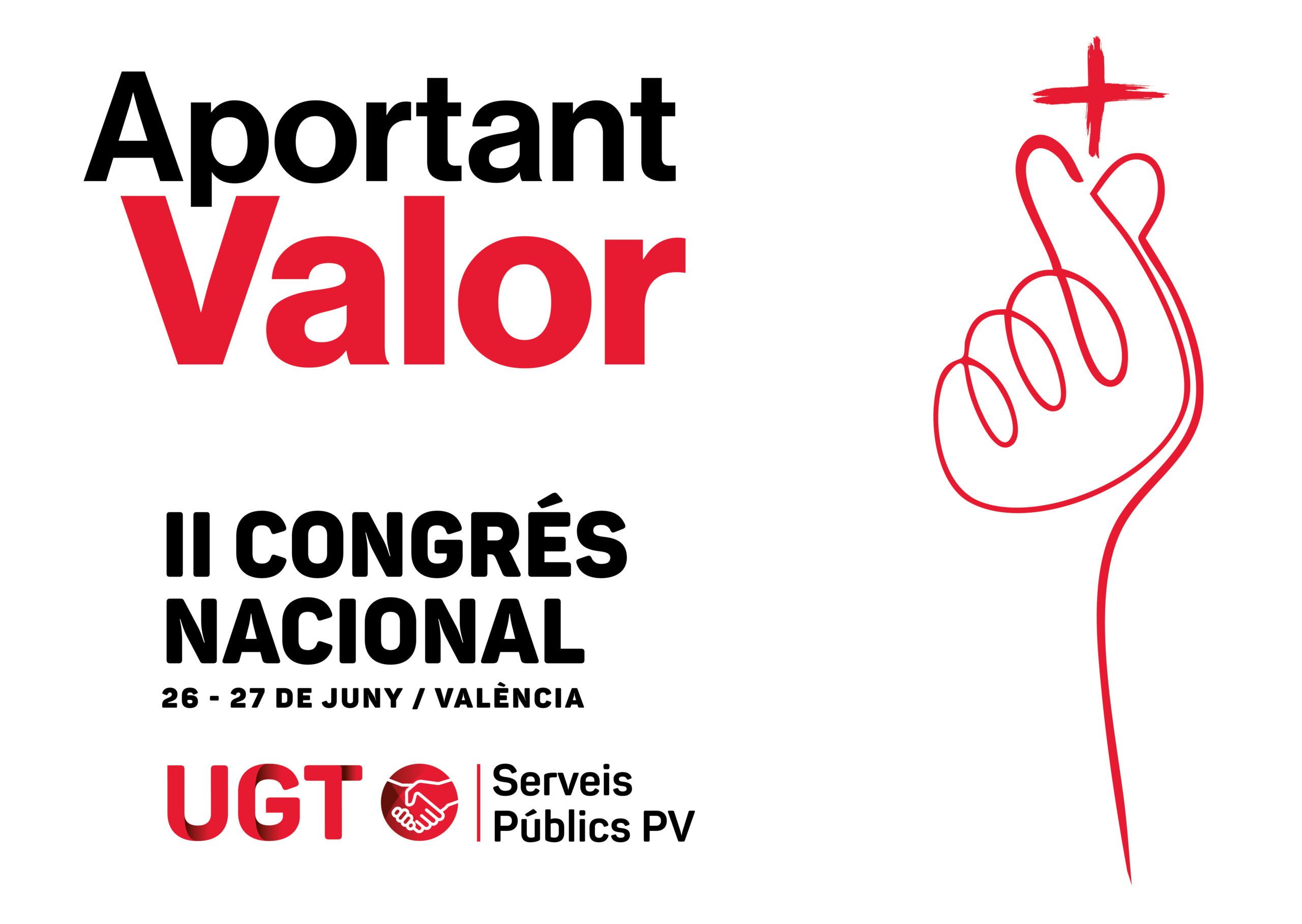UGT Serveis Públics del País Valencià celebrarà el seu II Congrés Ordinari els dies 26 i 27 de juny de 2025 amb el lema, «Aportant valor”, un lema amb què l’organització vol reflectir el compromís amb les empleades i empleats públics, així com la ferma implicació en la defensa d’uns serveis públics de qualitat. La defensa de “allò que és públic” és una manera de ser i d’estar, un compromís que pretén millorar la qualitat de vida de la societat per a aconseguir més democràcia, més igualtat i més llibertats, sota les premisses de la justícia distributiva i la universalitat.