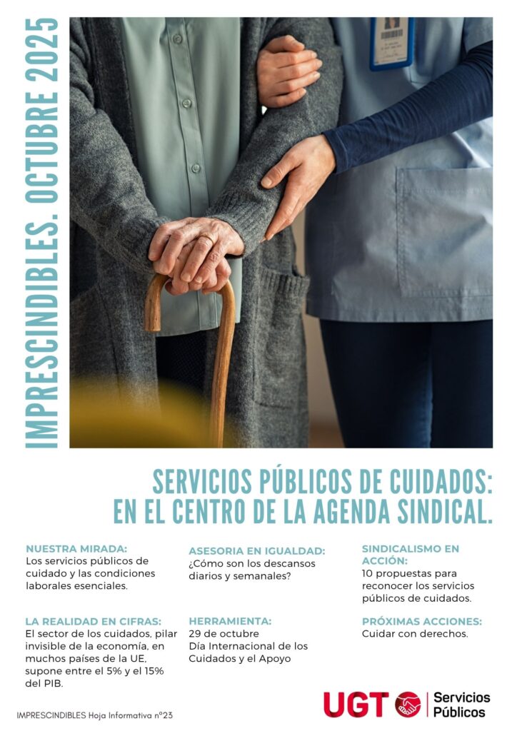 En el marco del Día Internacional de los Cuidados y el Apoyo, UGT Servicios Públicos impulsa la campaña “Cuidar con derechos” y el nuevo Imprescindibles de octubre, dedicado a los servicios públicos de cuidados, para analizar su realidad laboral y promover mejores condiciones en el sector.