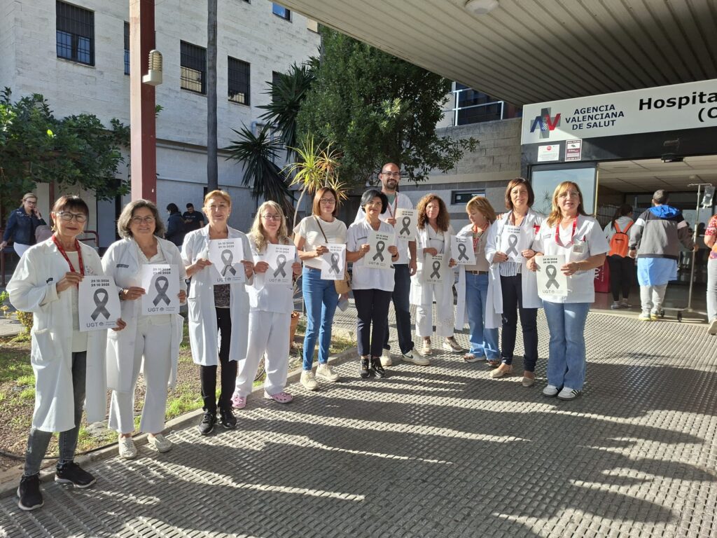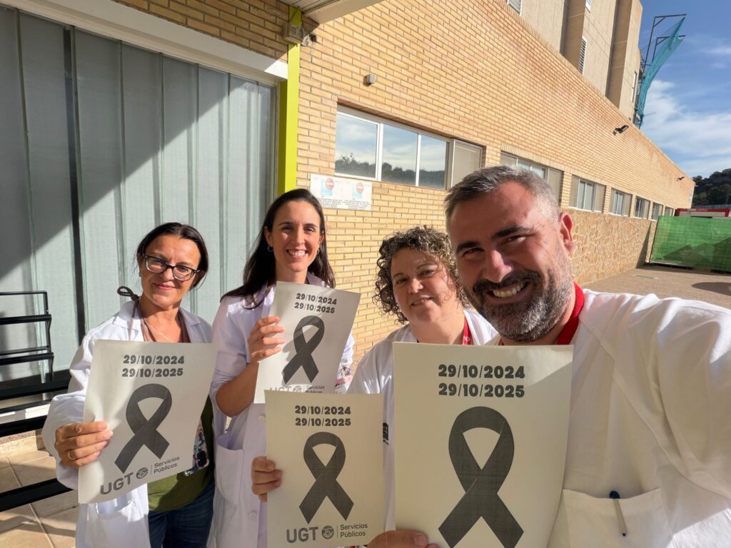 En un día como hoy, en el que se han organizado numerosos actos en solidaridad con la Dana, os informamos del minuto de silencio celebrado en los centros sanitarios de la Comunitat Valenciana y en el que UGT Serveis Públics ha participado para respaldar a estos trabajadores y trabadoras públicas esenciales.