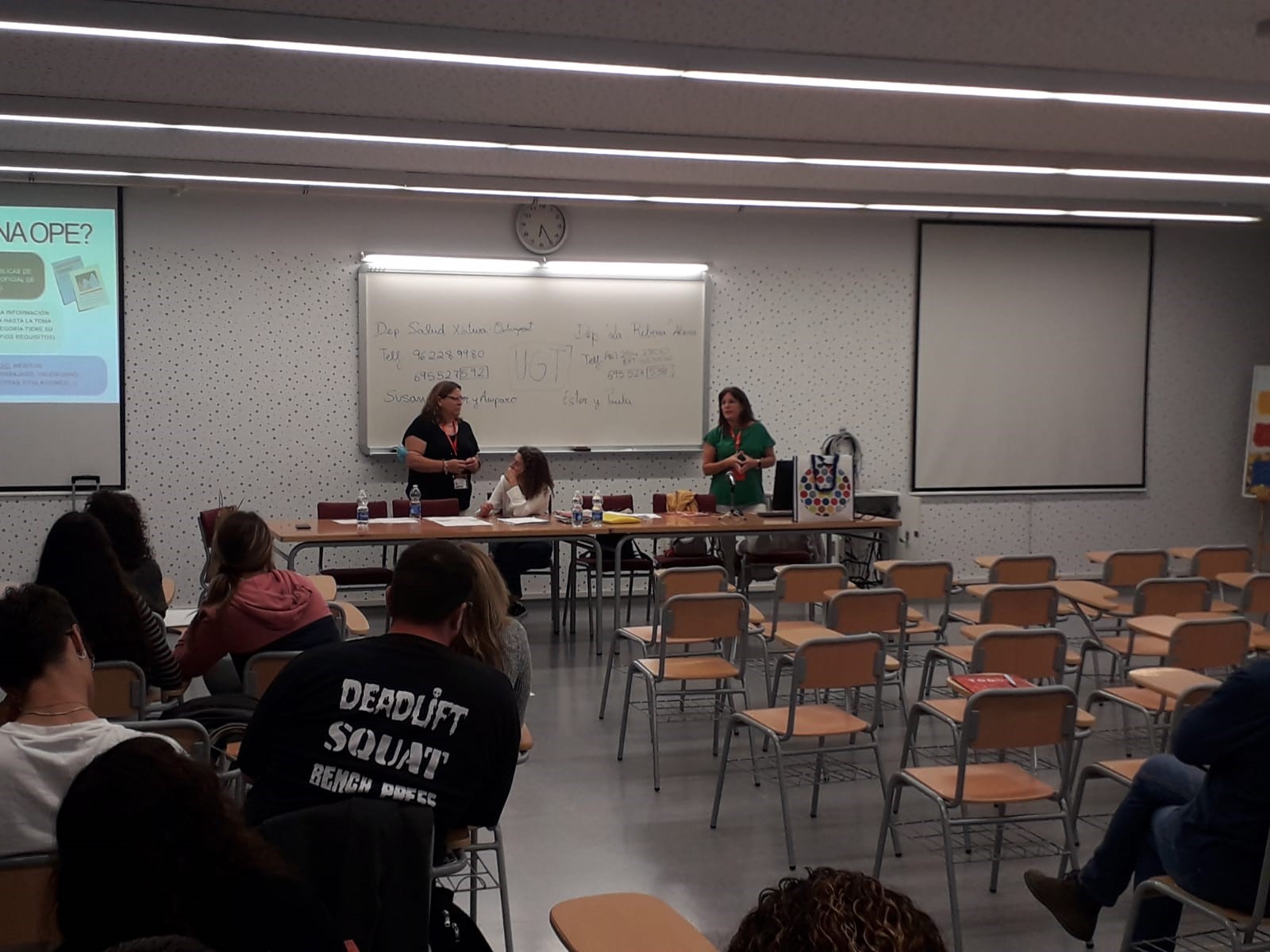 UGT también ha vuelto al cole. El sector de Salud de UGT Serveis Públics PV retoma las visitas a los centros de formación profesional sanitaria para el nuevo curso escolar 2023-2024 con el fin de ayudar a los futuros profesionales a resolver las dudas sobre el funcionamiento de la bolsa de trabajo, oposiciones, cursos etc., así como las particularidades sobre las jornadas de trabajo en el entorno sanitario.